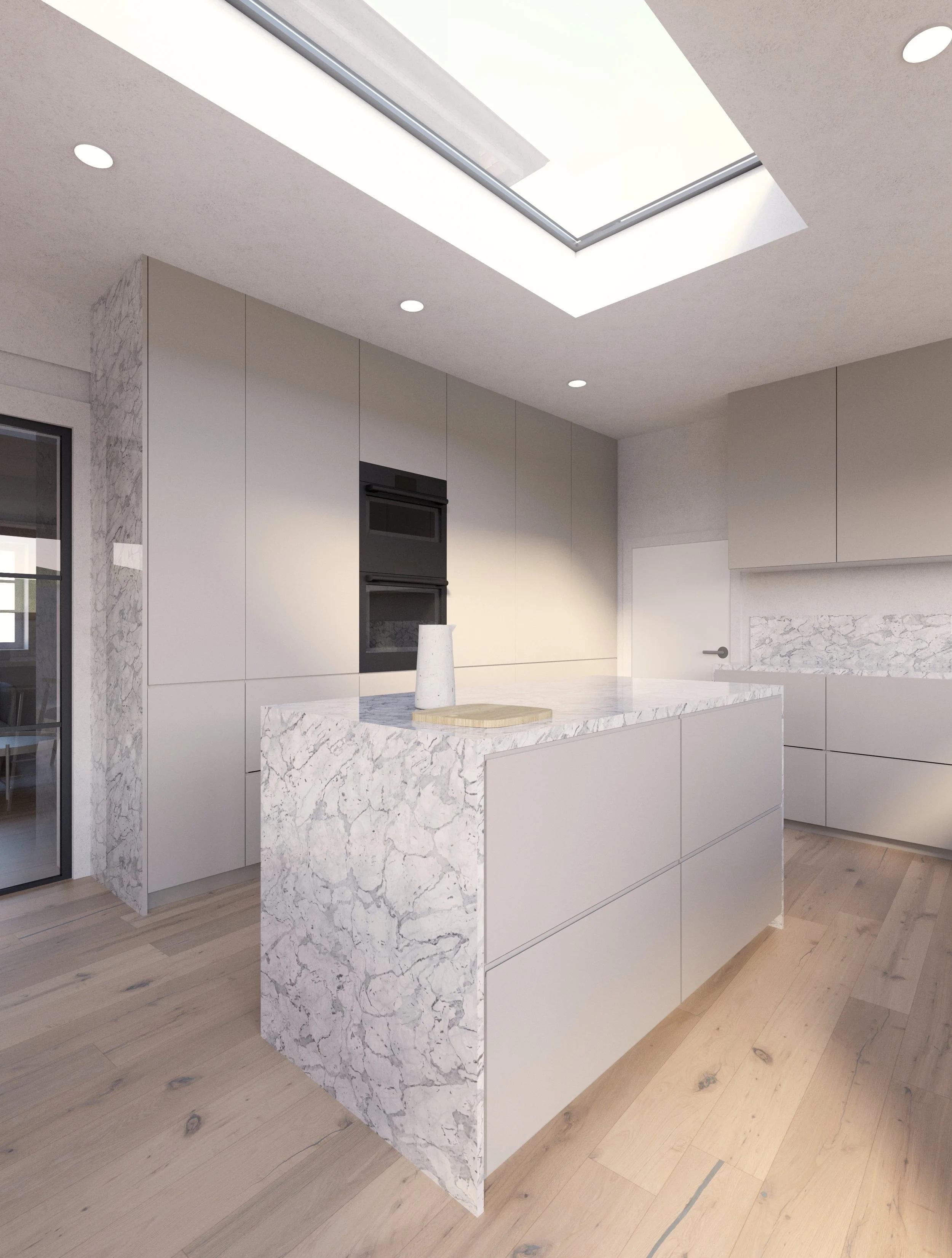 The existing single-storey rear extension had a poorly detailed flat roof and mismatched windows. We proposed removing the pitched roof, adding a small additional volume to the rear for a utility space, and rebuilding the roof as a green sedum surface — low maintenance, better to look at from above, and helping the project sit more gently in its context.
