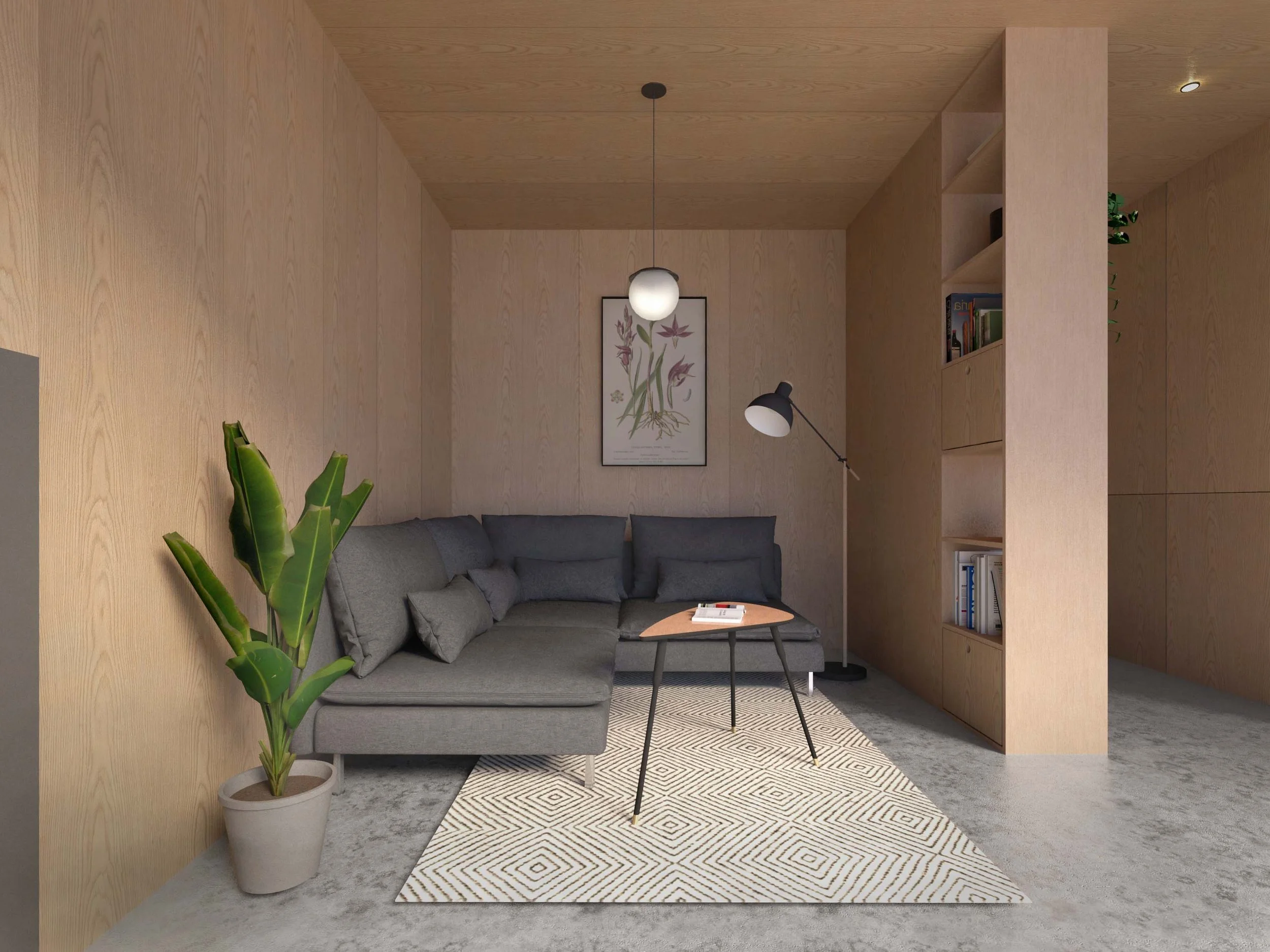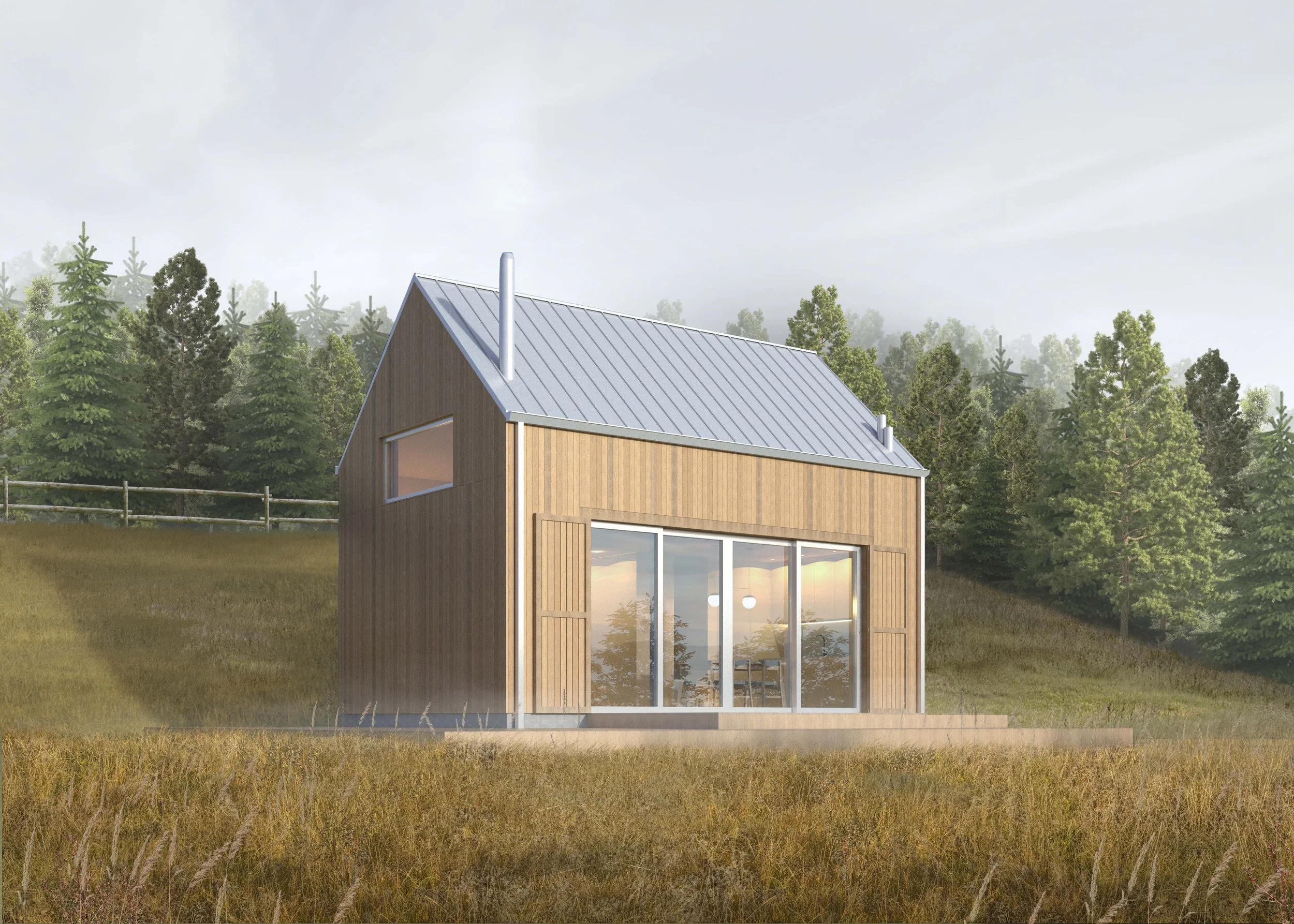A holiday home located on a picturesque plot in the southern part of the south-eastern section of the Beskid Wyspowy mountains. The building has a small footprint of 35 square meters and can be constructed under a simplified permit process. The house is clearly divided into two functional zones.